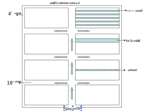 மேற்சொன்னபடி வடிவமைக்கப்பட்ட பண்ணையில் ஏர் உழவு தேவையில்லை. மூடாக்கு முறைக்கு மாறி விட்டால் களை கொத்த வேண்டிய வேலையும் இருக்காது. ஒரு விதையையோ செடியையோ நட்டு பராமரித்தாலே போதுமானது. வாணியில் நாம் மரங்களை நடவு செய்யும்போது மிகவும் நெருக்கி நடவு செய்ய வேண்டும். அதுவும் அது பிற்காலத்தில் வளர்ந்து மூன்று அடுக்கு முறையில் அமையும்படி நடவு செய்தல் நலம். இந்த மாதிரி அமையும் பண்ணையில் ஏர் உழவு தேவையில்லை, எரு இட வேண்டிய அவசியம் இருக்காது. பூச்சி மருந்து மற்றும் களைக்கொல்லி பயன்படுத்த தேவையில்லை. இரண்டு வாணிகளுக்கு இடையில் 5 மேட்டு பாத்திகள் கிடைக்கும். இதில் நமக்கு தேவையான அனைத்து பயிர்களையும் பயிர் செய்யலாம்.